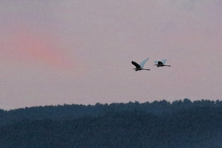 2021年 チュウサギ 004 戻る 撮影(09/24) 掲載(09/27) 約20羽が近くの一本の木で寝ています。 朝は三々五々餌場へ向かいます。 朝焼けを背に飛翔している光景です。寒くなったら居なくなると思います。その 後は別の白鷺が来るだろうと思います。 (Canon) EOS 7D Mark II EF400mm F5.6L USM