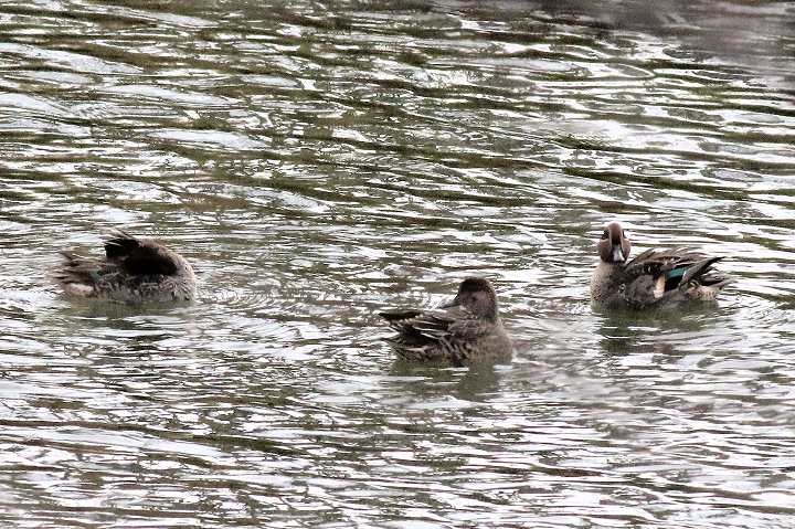 2021年 コガモ 005 戻る 撮影(12/05) 掲載(12/25) 拙い写真ですが、これ以降姿を見せませんので掲載です。 天候が安定すれば再び来るのでは、と予想しています。 写真右と左が♂で、真ん中が♀です。 (Canon) EOS 7D Mark II EF400mm F5.6L USM