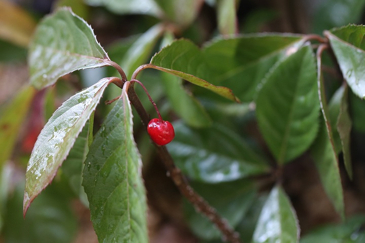 ヤブコウジです。変形した実ですから鳥が食べなかったのでしょうか。残り物の