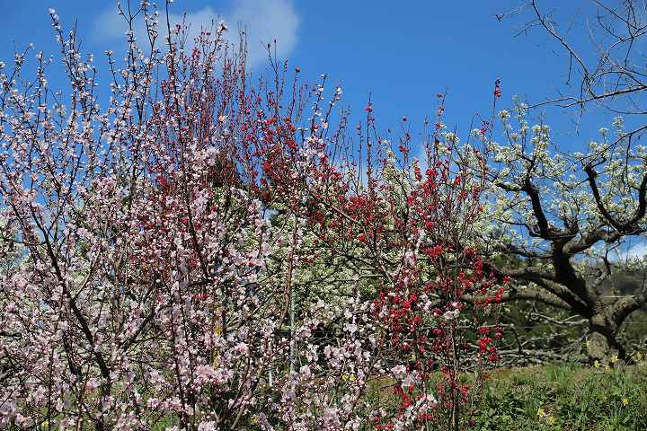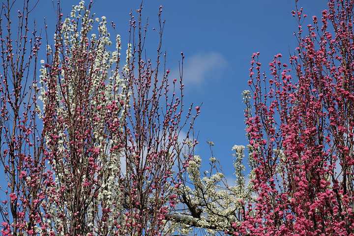 はなもも(花桃、Prunus persica)と梨の花、