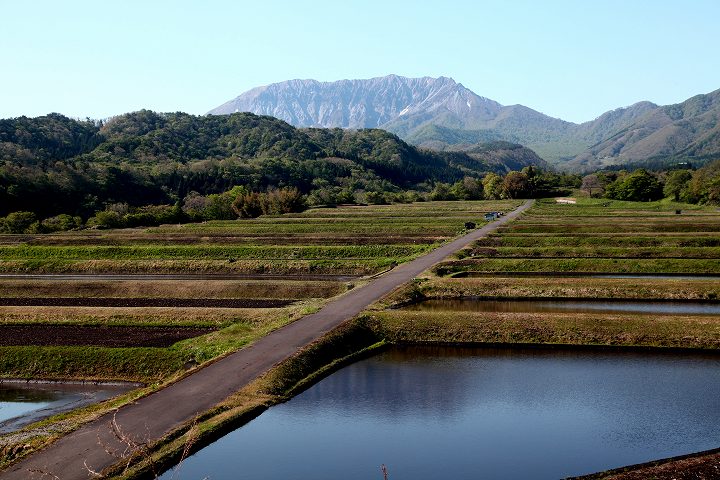 撮影地は鳥取県大山町です。「大山」には残雪が見られます。