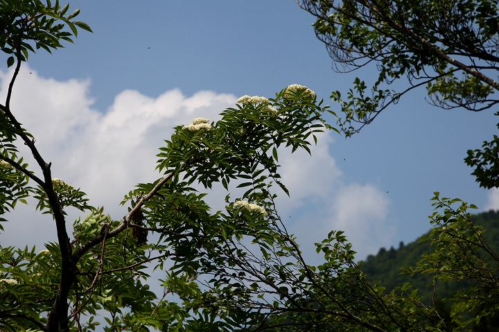 駐車場のナナカマドに白い花が乗っていました。4月や5月に花が咲くのだ