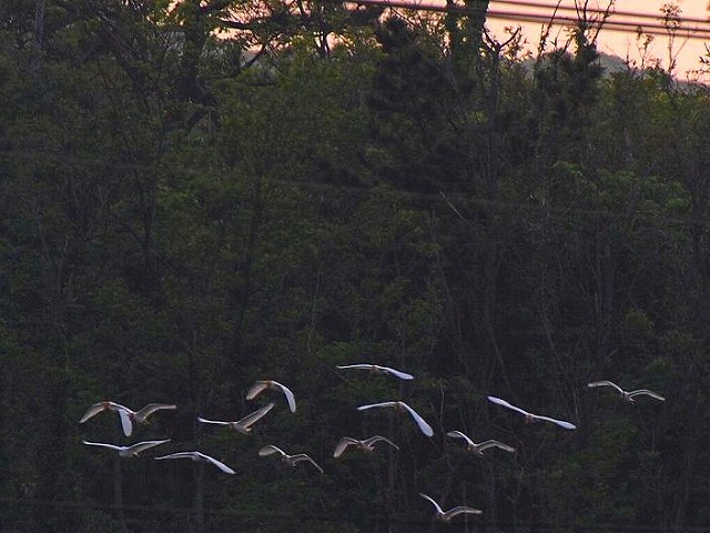 す。アマサギだと思います。コロニーにコサギ、アマサギ、チュウサギ、ダイサギ、
