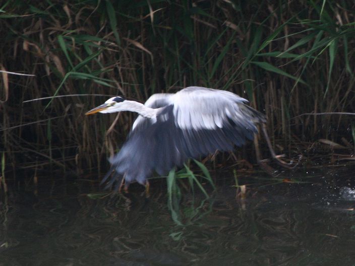 2007年 アオサギ 102 戻る 撮影(08/03) 掲載(08/04) アオサギも強風を嫌いますが、アサ之丞は一味違います。ただ、やりたい事は 全てうまく行くわけではありません。 それ今だ! と飛び出したのですが、飛行中に突風がやって来て、飛べなくなり、 川の土手に落ちるようにして下りました。 (Canon) EOS Kiss Digital X EF 300mm F4L IS USM + (Kenko)2X TELEPLUS MC7 DG