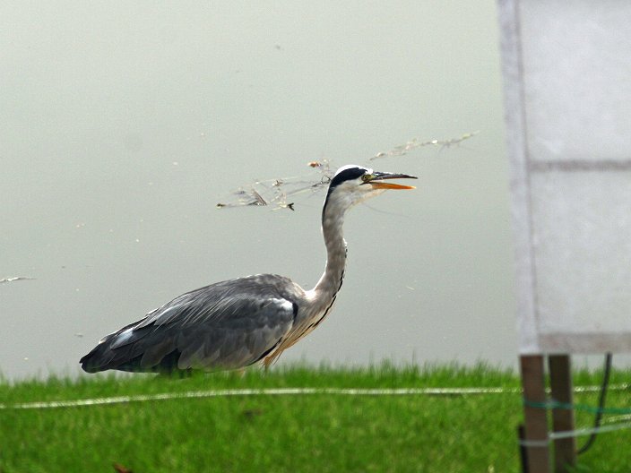 アオサギの場合、冠羽(かんう)は黒く、眼の上から後頭部へ、そして頸の後ろ