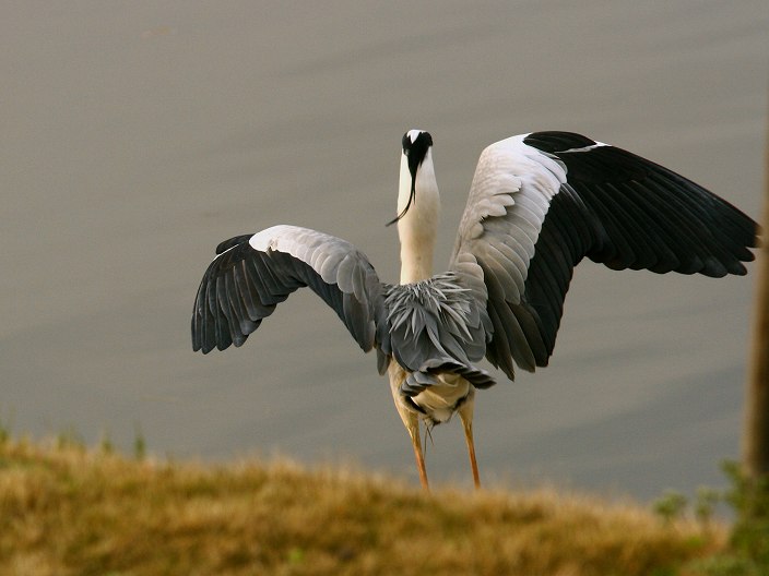今日のアオサギは頸の一部を膨らませながら飛んでいました。そ嚢(そのう)は