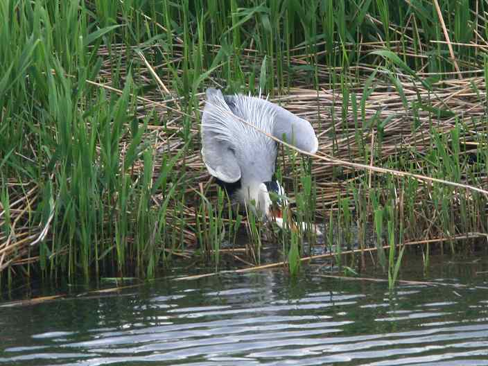 2007年 アオサギ 045 戻る 撮影(04/25) 掲載(04/27) 約2秒後の写真です。 大変驚いたことに、その大きな魚を川に戻そうとしています? いわゆるリリー スです。大きすぎて食べきれない魚は殺さずに川に返してやる。 そうなのかそうでないのか、間もなく真実が解明されようとしています。 (Canon) EOS Kiss Digital X EF 300mm F4L IS USM + EXTENDER EF 1.4X II