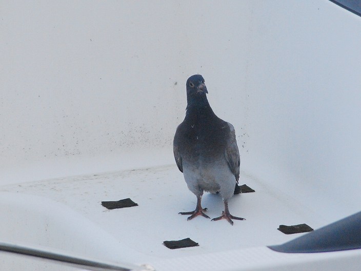 いつもの様に川を見ていた時、ドバトが川から舟の上に飛び上がって来ました。