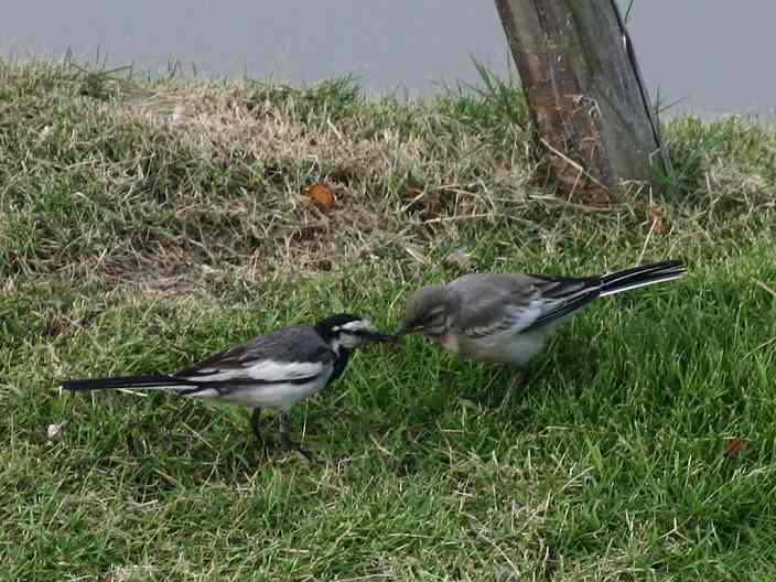 2007年 ハクセキレイ 014 戻る 撮影(06/13) 掲載(06/14) 親鳥に餌を貰っています。この雛鳥だけが自分で餌を見つけることが出来ま せん。 写真左が成鳥ですが、雛鳥の方が大きくて、親鳥より貫禄があるように感じ ます。 (Canon) EOS Kiss Digital N EF 200mm F2.8L II USM + (Kenko) 1.4X DIGITAL TELEPLUS PRO 300