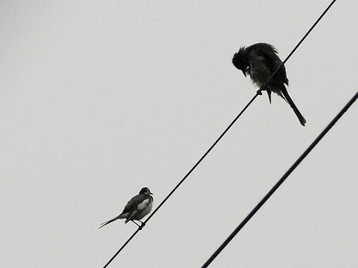 右は髪型から見てヒヨドリ。左は変なハクセキレイです。此のハクセキレイは