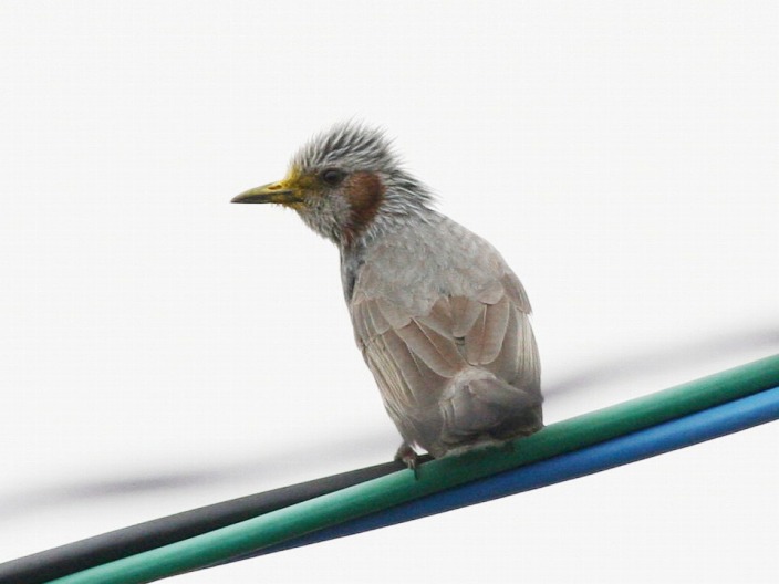 2007年 ヒヨドリ 013 戻る 撮影(03/27) 掲載(03/28) このヒヨドリ、初めて見る顔です。 ふらりふらりとやって来て、どうして良いやら分からず、線の上にあぐら姿で、 きょろきょろ周囲を見ている、という感じです。幼鳥のようでもあり、鳥類世界を 悟りきった老いた鳥のようでもあり、私には判別できません。 (Canon) EOS Kiss Digital N EF 200mm F2.8L II USM