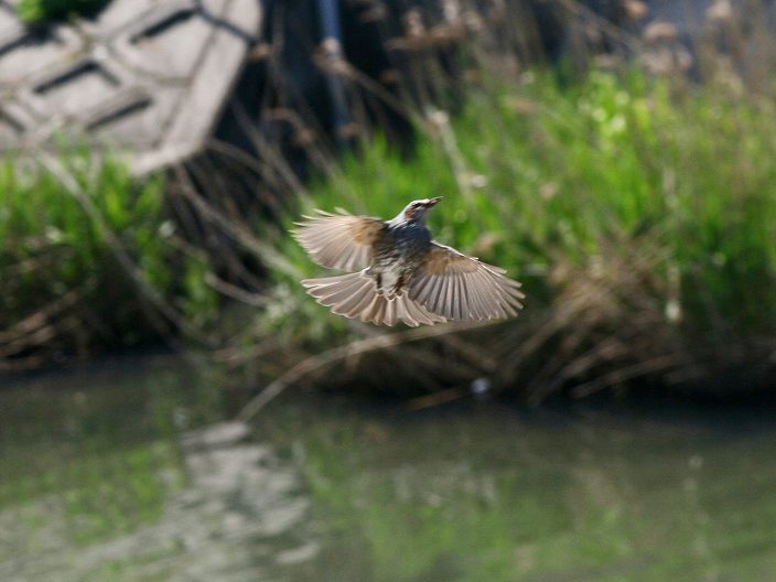 2007年 ヒヨドリ 015 戻る 撮影(04/19) 掲載(04/20) ヒヨドリの空中捕食の瞬間です。 飛びながら昆虫をくわえますが、ツバメに比べると素早さはなく、飛ぶ速度も かなり落ちます。 なおイソヒヨドリは空中に殆ど停止しますから、ヒヨドリは少し不細工な鳥です。 (Canon) EOS Kiss Digital N EF 200mm F2.8L II USM