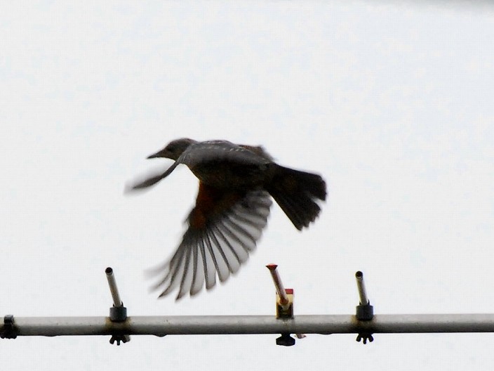 このイソヒヨドリは、翼の下面にレンガ色が見えます。が、今のところイソヒヨド