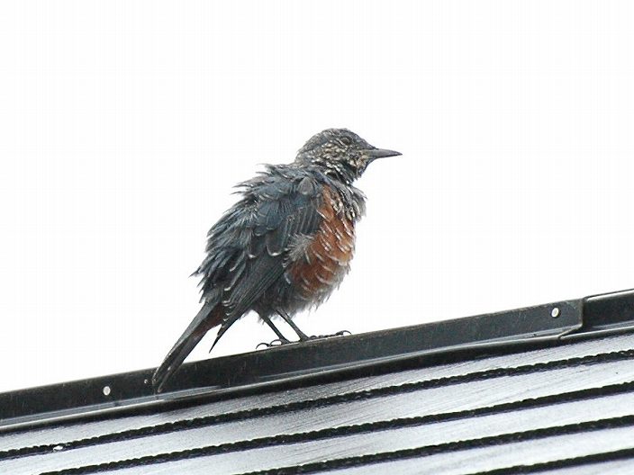 この幼鳥は常に単独行動です。他の3羽は同時に同じ屋根に現れることがあ