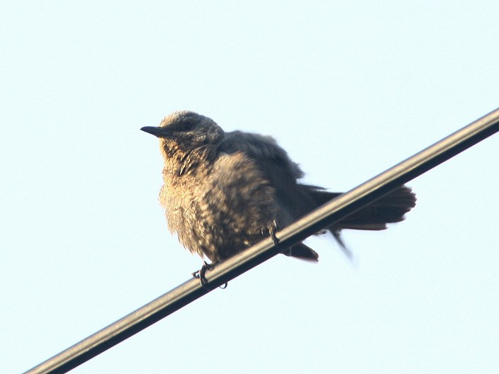 イヒ二世の娘です。今日は堂々と電線に止まり、羽繕いをしていました。