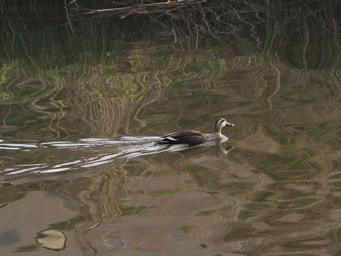 「班長」と名付けているカルガモです。突如ひょっこり姿を見せました。窓外水域