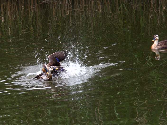 下になっているカルガモは、昨年同様、夏場に来るグループでしょうか?