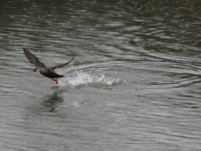 このカルガモは台風か何かで群れからはぐれて1羽だけで飛来したのではない