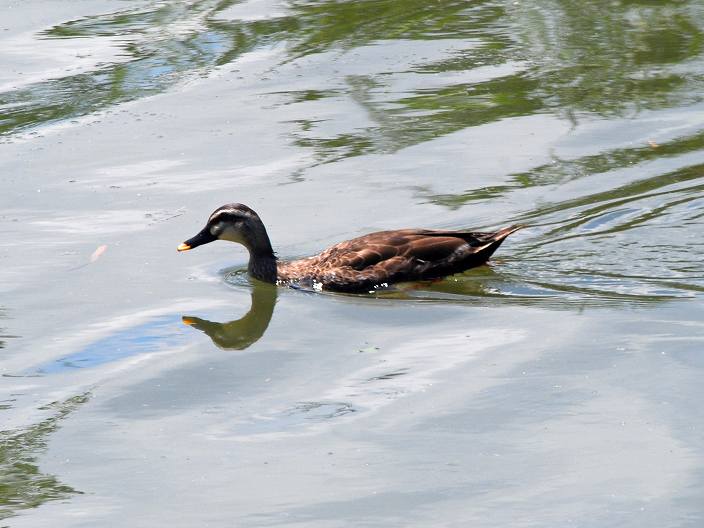 2007年 カルガモ 114 戻る 撮影(08/10) 掲載(08/11) つい最近ここに飛来着水したカルガモです。 最初からどうも少し行動が変でしたが、やはり現在も単独で行動しています。 仲間を求めていると思うのですが、単独行動です。 (Nikon) D40x Ai AF-S ED 300mm F4D (IF) + (Kenko) 2X DIGITAL TELEPLUS PRO300