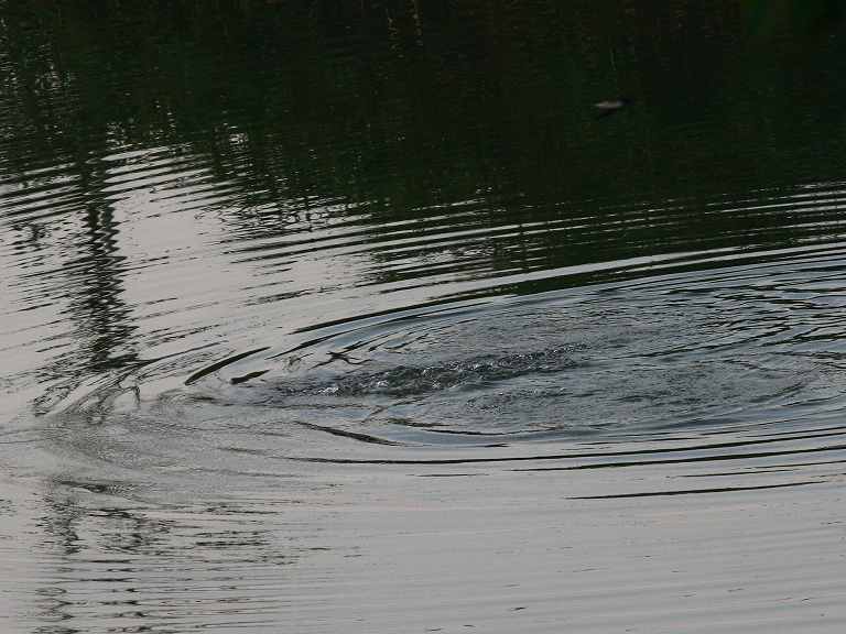 中央の波紋は、いま潜水して出来たものです。手前の少し楕円形になった波紋