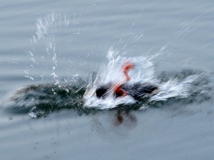2007年 カルガモ 009 戻る 撮影(01/27) 掲載(01/31) 「065」と同じカルガモかどうかは忘れましたが、ばたばたと大きな音を立てな がら、激しい水浴をしていることは、どの川や池でも普通に観られる行為でしょう し、そういう場合には、こういう格好になっている瞬間もあるだろうと思います。 Canon) EOS Kiss Digital X EF 300mm F4L IS USM