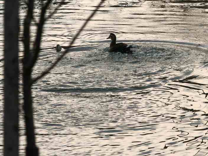 断です。前の写真は水中を自分の方に近づいて来るカルガモに気付いて、次の