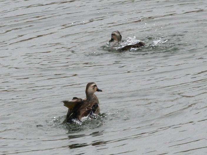 一般的には、♂が水浴びする場合は、♀が水浴びし水面に立って羽ばたきした
