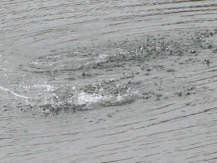 此の写真だけでは「軽鴨が潜った波紋」とは断定出来ないだろうと思いますが、