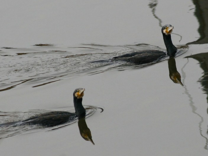 ましたが、魚挟み撃ち作戦をやる目的で2羽が並んでいたことを知りました。