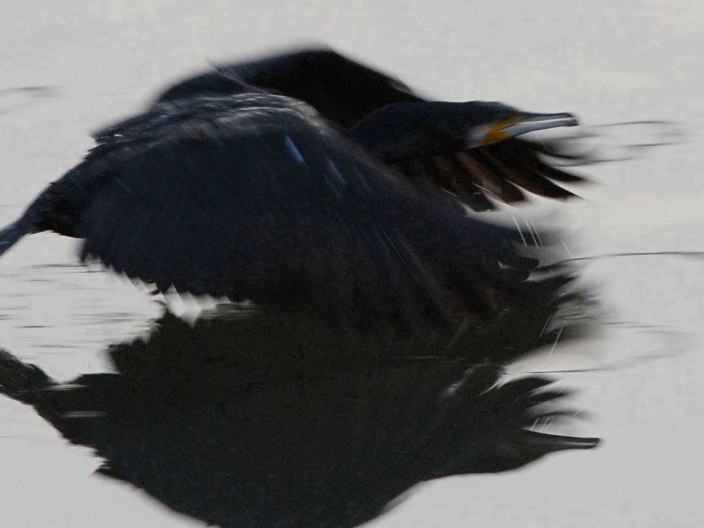 2007年 カワウ 009 戻る 撮影(01/25) 掲載(01/26) 今日こそは直接飛び立ちするぞ、と期待しながら撮ったのですが、それどころ か、7回も10回も水面を叩いて、典型的な助走飛び立ちをしたのでした。 (NIKON) D80 Ai AF-S Nikkor ED 300mm F4D (IF)