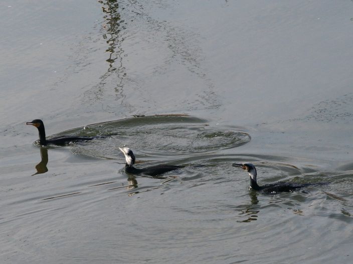 カワウ軍団今日も行く、白髪靡かせ今日も往く。