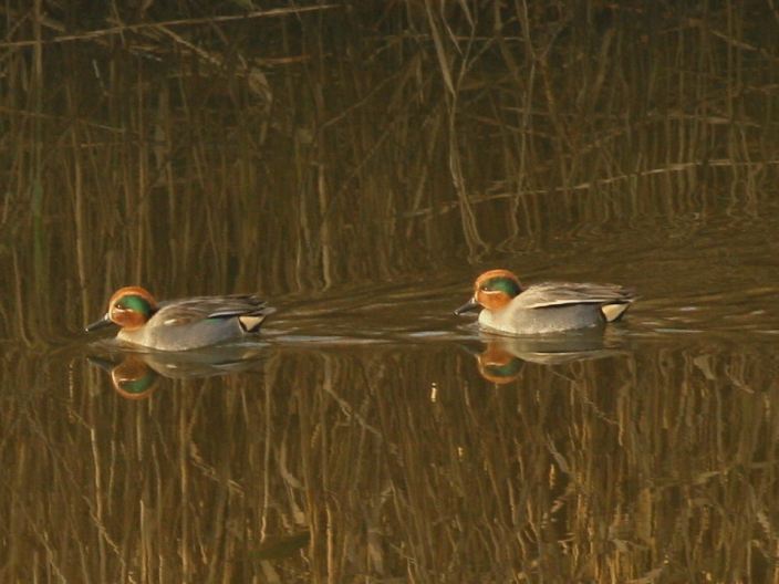 書物には、コガモの尾っぽに近い三角形は黄色、と書いてあるのに、私の場合、