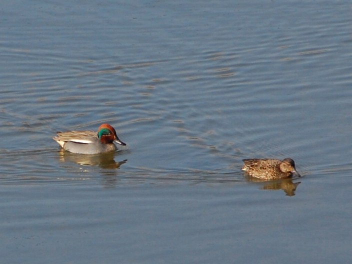 ています。後に続いて、此の2羽のコガモ♂♀です。つがいを形成したので、祝辞