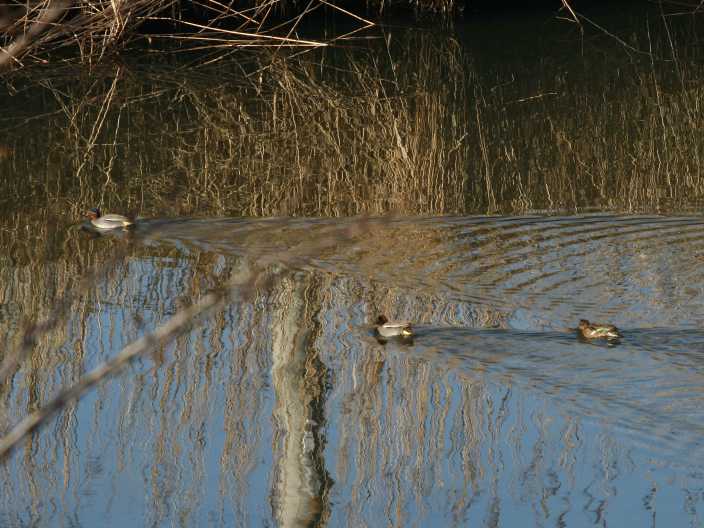 3月1日のコガモです。この♂♂♀の3羽は2月28日と同じです。しかし他の