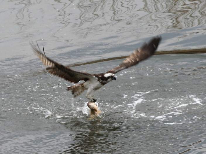 私がミサゴでしたら、嘴で魚に噛みつき、もう一度川に飛び込んで、川底まで潜