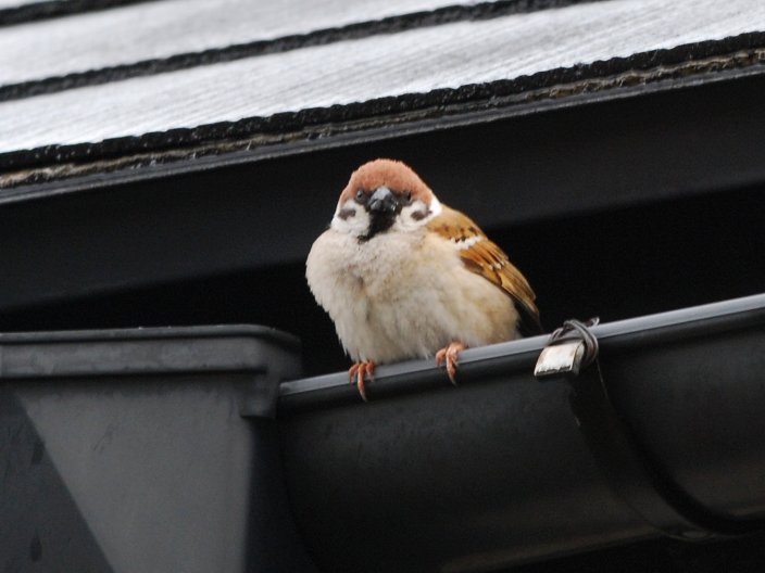 このスズメは昨年生まれです。頬の黒い部分が少ないですから、まだ若鳥だと