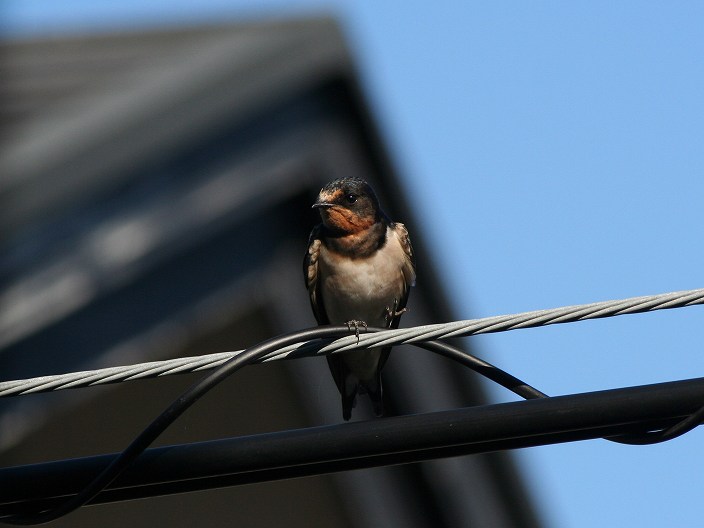 犯人は此のツバメではありませんが、胸や腹の色が少し他と異なる一族の一員