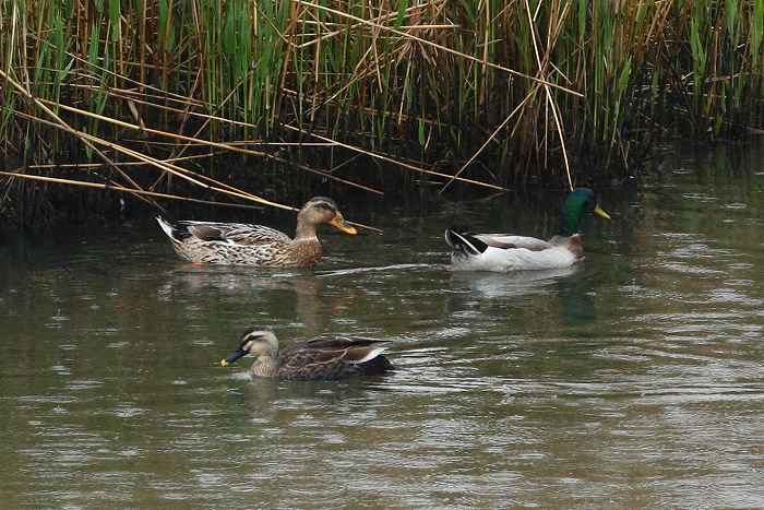 前を泳いでいる♂は、異種の鳥に対してかなりの影響力を持っているように