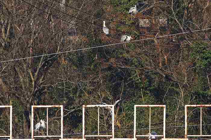 2008年 アオサギ 010 戻る 撮影(03/09) 暫くはアサ之丞とか年下アオサギかどうかの断定は控える、と書きました。 それは、現在こういう状態で、この6羽が入り乱れて飛んで来た場合、誰が誰 だか分かりゃあしません。 多忙中です。落ち着くまで待ってあげましょう。 (Canon) EOS 40D EF 300mm F4L IS USM