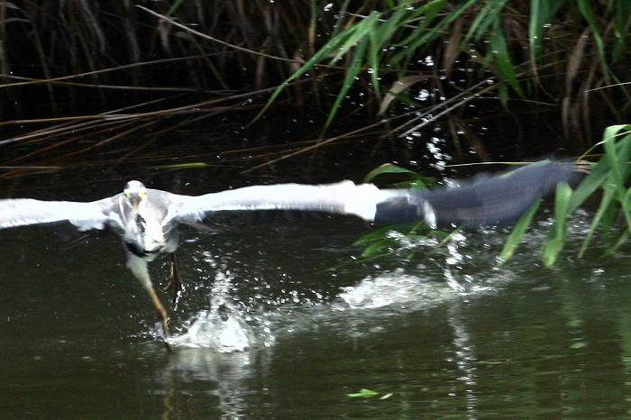 先日、アオサギが陸ではなくて水に立っている状態で飛び立った場合、脚はど