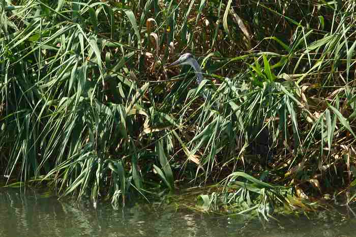 突っ込む前に、周囲の葦がざわざわ動いて、魚は逃げてしまいます。また、飛び
