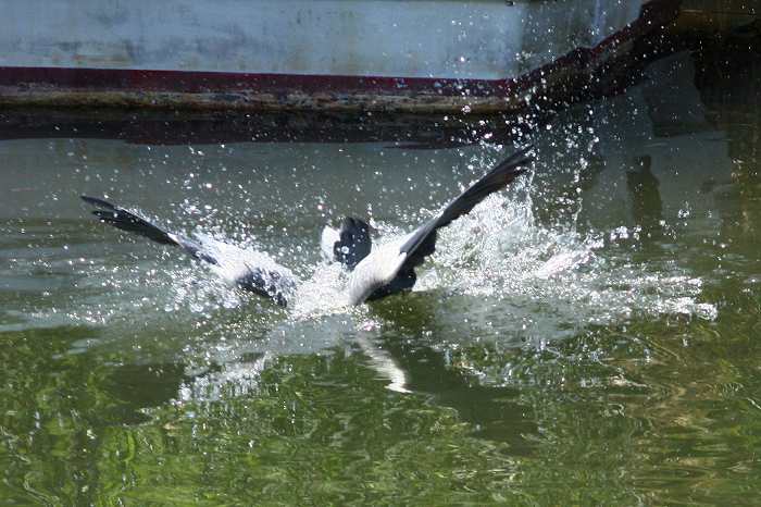 2008年 アオサギ 054 戻る 撮影(09/09) アサ之丞がこっち方向へ飛び込みました。舟からかなり離れています。脚は川 底に着かない水深だと思います。 下手な写真で申し訳ありません。アサ之丞の向こう側に見えるのは尾羽だと思 います。 翼を大きく広げています。 続きます。 (Canon) EOS 40D EF 300mm F4L IS USM