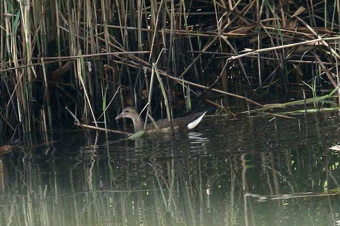 色です。幼鳥はシロハラクイナと似ているのだそうですが、バン幼鳥は脇に白斑が