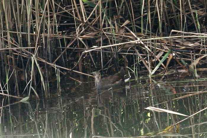 アサ之丞はバンの親鳥とは顔見知りですから、葦の間からにょきっと顔を出しても腰