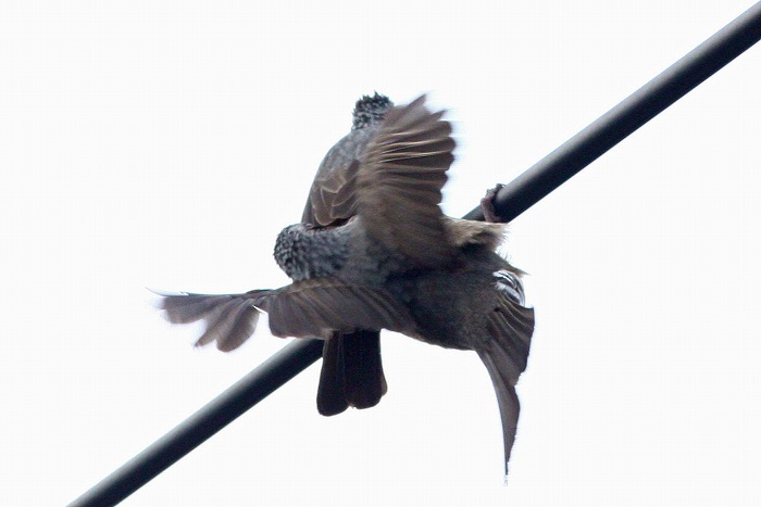 鳥は敵意を持って近くに止まった時、翼を少し開き、その翼を小刻みに開閉し、