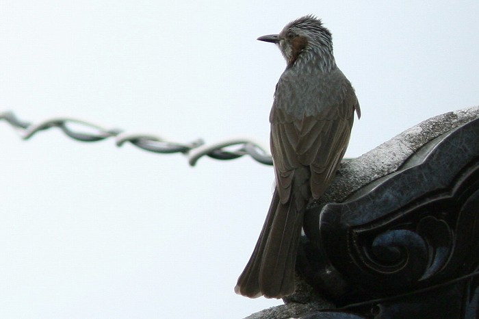 2008年 ヒヨドリ 017 戻る 撮影(05/19) 成鳥はこのようにスラッとしたスタイルに見えるのが普通です。ところが、我が 家近くに住んでいる成鳥は、ずんぐりしていますし、童顔ですから、兎に角やや こしいことになってしまいます。 (Canon) EOS Kiss Digital X EF 300mm f/4L IS USM + EXTENDER EF 1.4X II