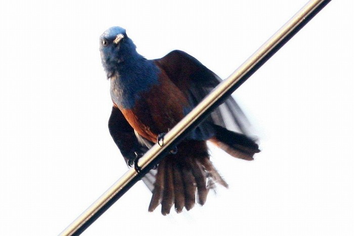 2008年 イソヒヨドリ 017 戻る 撮影(04/02) イヒ三世です。 こんな格好して頑張っています。何をそんなに興奮しているのやら。 Canon EOS 40D EF 300mm f/4L IS USM