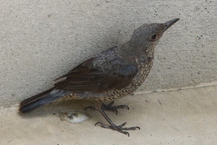 2008年 イソヒヨドリ 058 戻る 撮影(05/27) 先日登場した雛鳥です。 現在は立派な幼鳥になり、猛スピードで飛翔します。我が家の炊事場から食堂・ 居間をのこのこ歩いていたのは、この幼鳥です。 下面は全体が褐色の鱗状斑ですが、私は未だ♂か♀かを決めかねています。 イヒ三世は、この雛鳥を♀だと思いこみ、あまり念入りには保護していないので はないか、と考えています。 (Canon) EOS 40D EF 300mm F4L IS USM