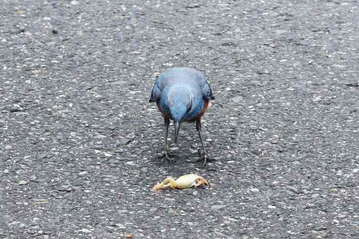 2008年 イソヒヨドリ 064 戻る 撮影(05/11) 『カエル物語』その13、です。演ずるはイヒ三世です。 イヒ「仰向けにしてみました。やはりぴくりとも動きません。」 私「よかったなあ。君が慌てているから、仰向けに置いたつもりが、俯けに置い ていたのだろう。ま、結局は、木から転落した時に絶命していたということだ。」 イヒ「みっともないところお見せしました。」 (Canon) EOS 40D EF 300mm F4L IS USM