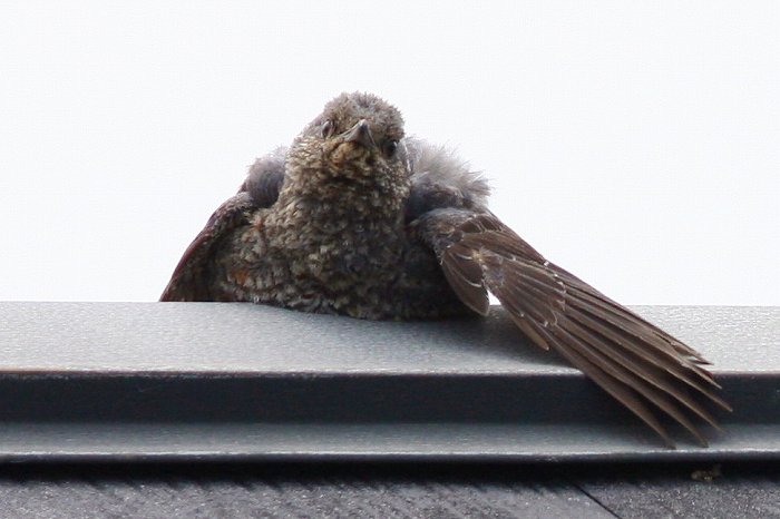 イソヒヨドリの雛は、非常に早く巣から出ますので、よく腰を抜かします。腰を抜